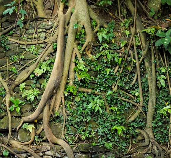 Roots grow deep in rich or sickened soil;